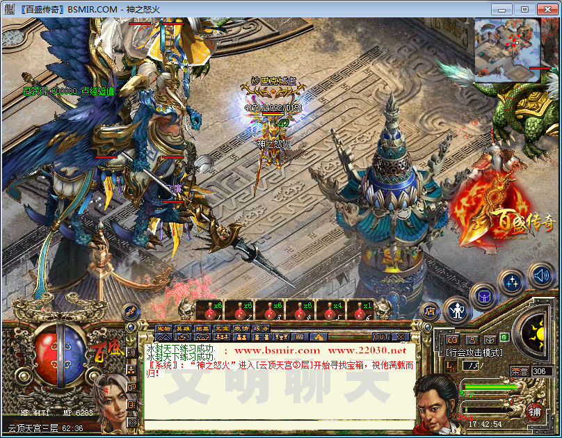 三层BOSS:降龙罗汉(40000HP) 九天玄女(50000HP) 飞廉(80000HP)